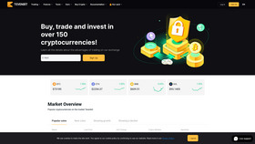 Boilerplate promises of 'Buy, trade and invest in over 150 cryptocurrencies!' with no evidence of regulatory compliance or real operational history.